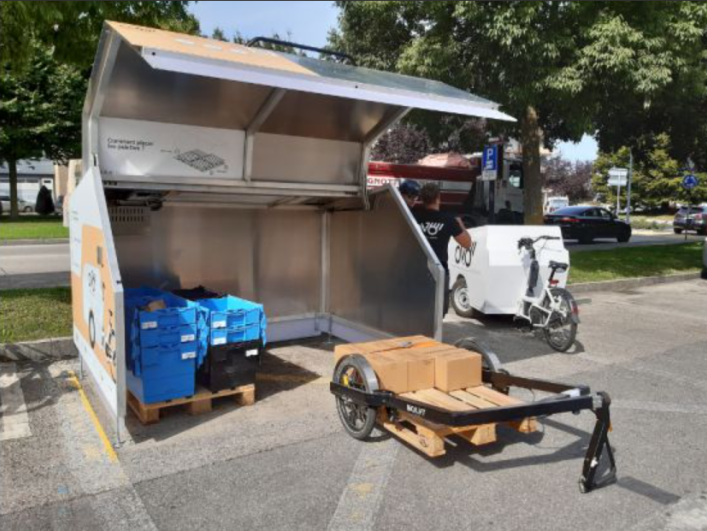 Nanohubs are tested in several strategic locations in Brussels and Barcelona to facilitate the transhipment of deliveries from conventional logistics to cycle logistics.